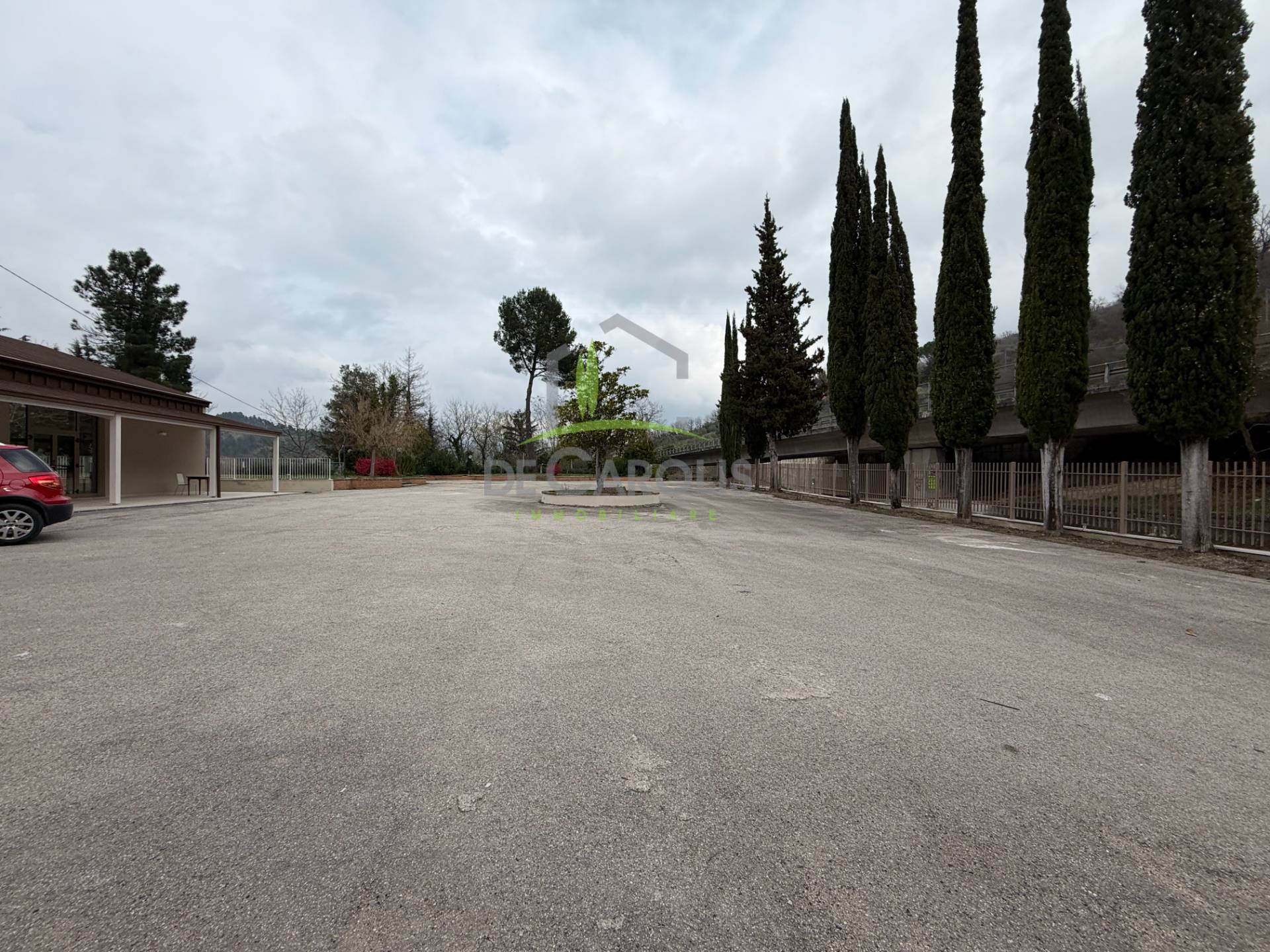 L'immobile è posto su strada Salaria, arteria storica di collegamento dell'entroterra, con ampio spazio esterno totalmente recintato che permette possibilità di parcheggio, ma anche sviluppare buffet ed aree divertimento vista la sua grandezza.